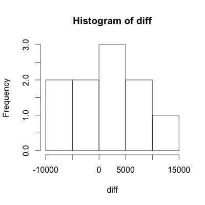 3. Next we need to check the normality assumption of our diff data to ensure our subsequent conclusions are valid. To do this we will construct both a histogram and normal probability plot.